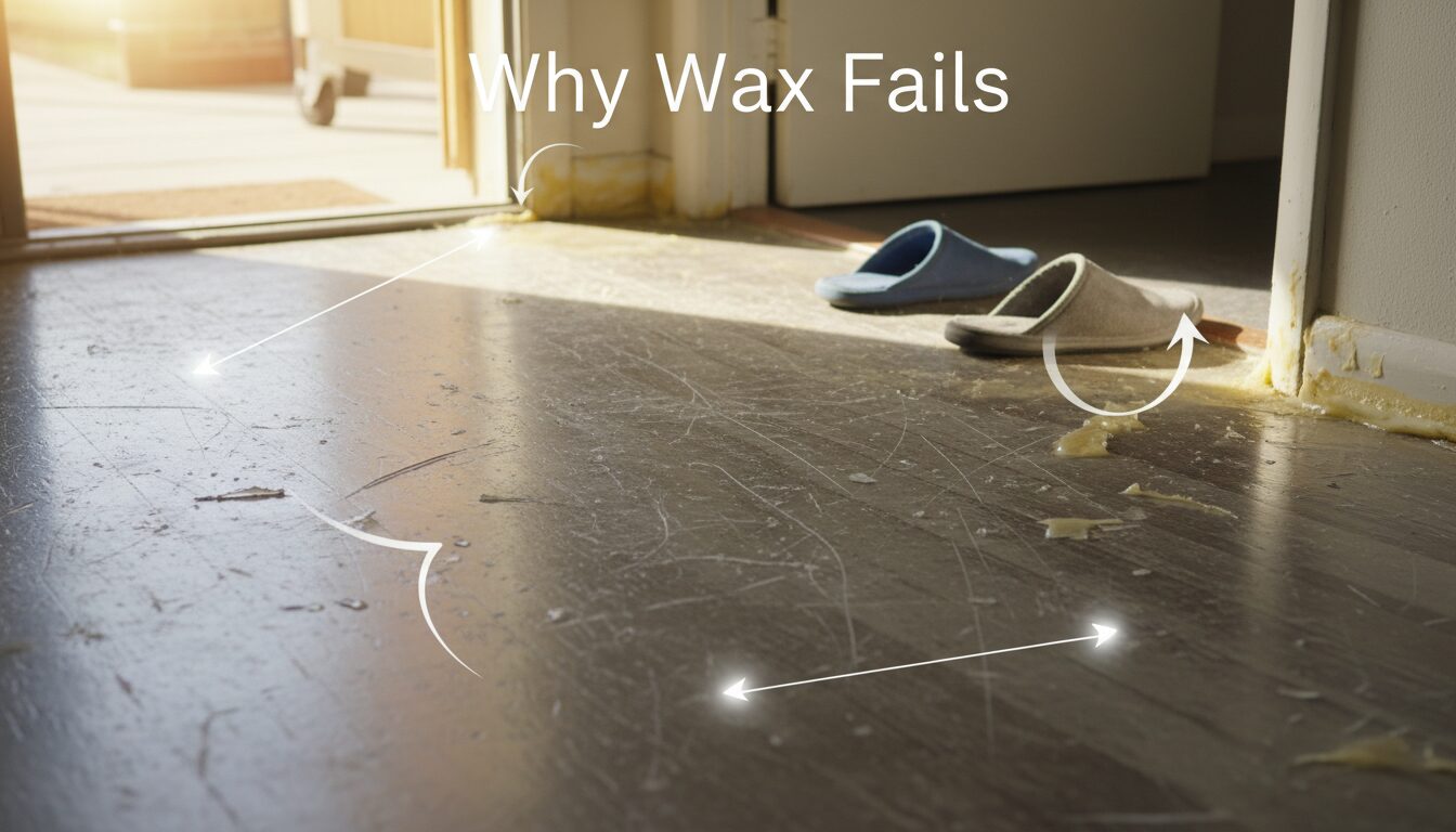 ワックスは床を保護し、美しい光沢を出すためのコーティングですが、半永久的にきれいな状態を保てるわけではありません。日々の歩行や清掃、紫外線、温湿度の変化など、多くの要素から影響を受けます。こうした要因が少しずつ蓄積し、剥がれ・ムラ・黒ずみなどのトラブルとして表面化していきます。